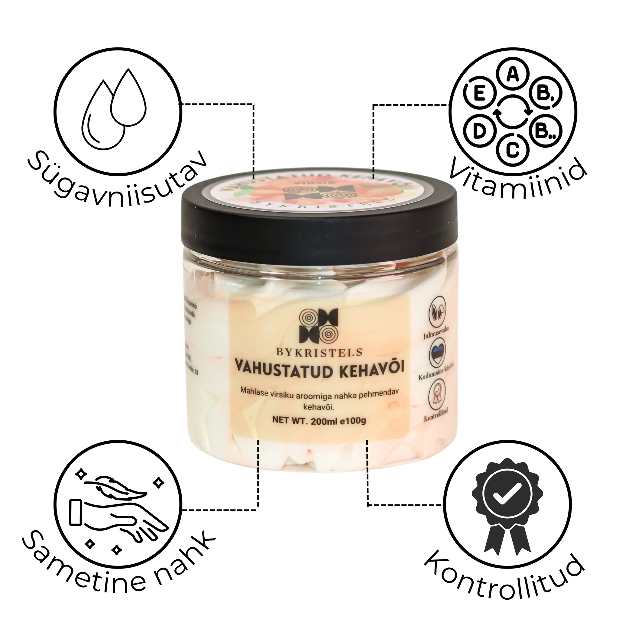 NB! Katseta enne kehale määrimist nahal, kui hästi toode nahka imendub, et ei kasutaks korraks toodet liiga palju ja et hiljem ei määriks tootega riideid või voodipesu. Kehavõid ei sisalda vett ning on seetõttu väga toitvad.